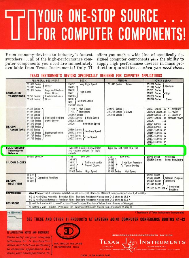 Texas Instruments Semiconductors for Computers (Adv, 502, pierwszy układ scalony) [22]