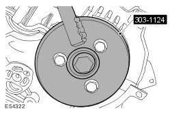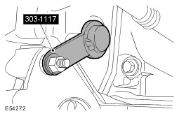 Using the special tool, remove the camshaft rear pulley bolt. |