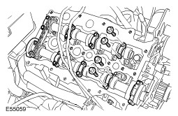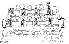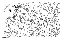 Loosen the 6 exhaust camshaft pulley bolts. ![]() |