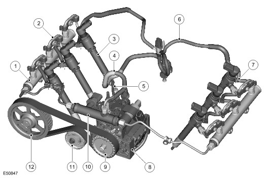 | 1 | - | High-pressure (HP) fuel rail (2 of) |