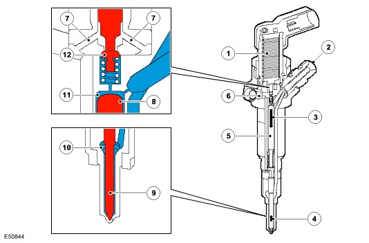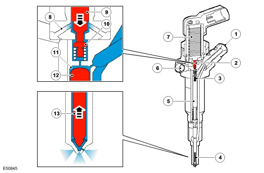 | Each Injection event is controlled by a charge and discharge cycle allowing energy to dissipate in, and recover from, the injector. Never disconnect the wiring connector when the vehicle is running. The injector may remain open thus causing engine damage. |